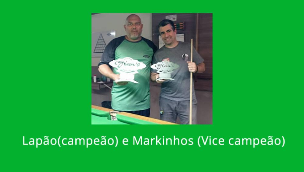 O Greens Snooker Bar está de parabéns por proporcionar aos seus clientes além de um excelente ambiente para ser frequentado, competições que promovem o esporte de forma uniforme e constante, não se pode deixar de citar o empenho dos clientes e atletas que se esforçaram e fizeram o seu melhor na competição. Que sirva de exemplo a todos os estabelecimentos e aos clubes que voltem a promover seus campeonatos internos.